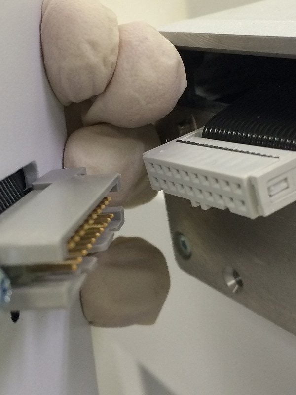 3つのネジを外すと、接続はコネクタのみとなるので、Z軸が落下しないよう注意して下さい。