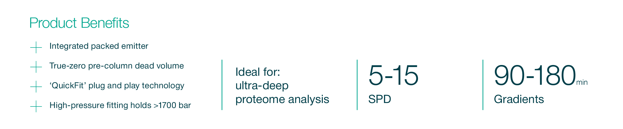 研究者による研究者のためのカラムです。ELITEはAuroraシリーズの代名詞である深い発見を実現するために特別に設計されており、「一日でできる実験」ワークフローに適しています。